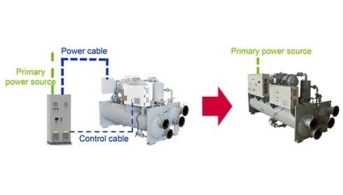 Việc loại bỏ toàn bộ hệ thống dầu bôi trơn giúp òng máy chiller VM Series không cần thay dầu, lọc dầu hay các phụ tùng liên quan, giảm đáng kể chi phí và công tác bảo trì. Bảng điều khiển inverter được tích hợp sẵn và hoàn thiện tại nhà máy, không cần thêm dây điều khiển hoặc nguồn điện phụ, vừa tiết kiệm chi phí, vừa tối ưu không gian lắp đặt.