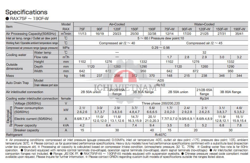 MÁY SẤY KHÍ ORION MODEL RAX