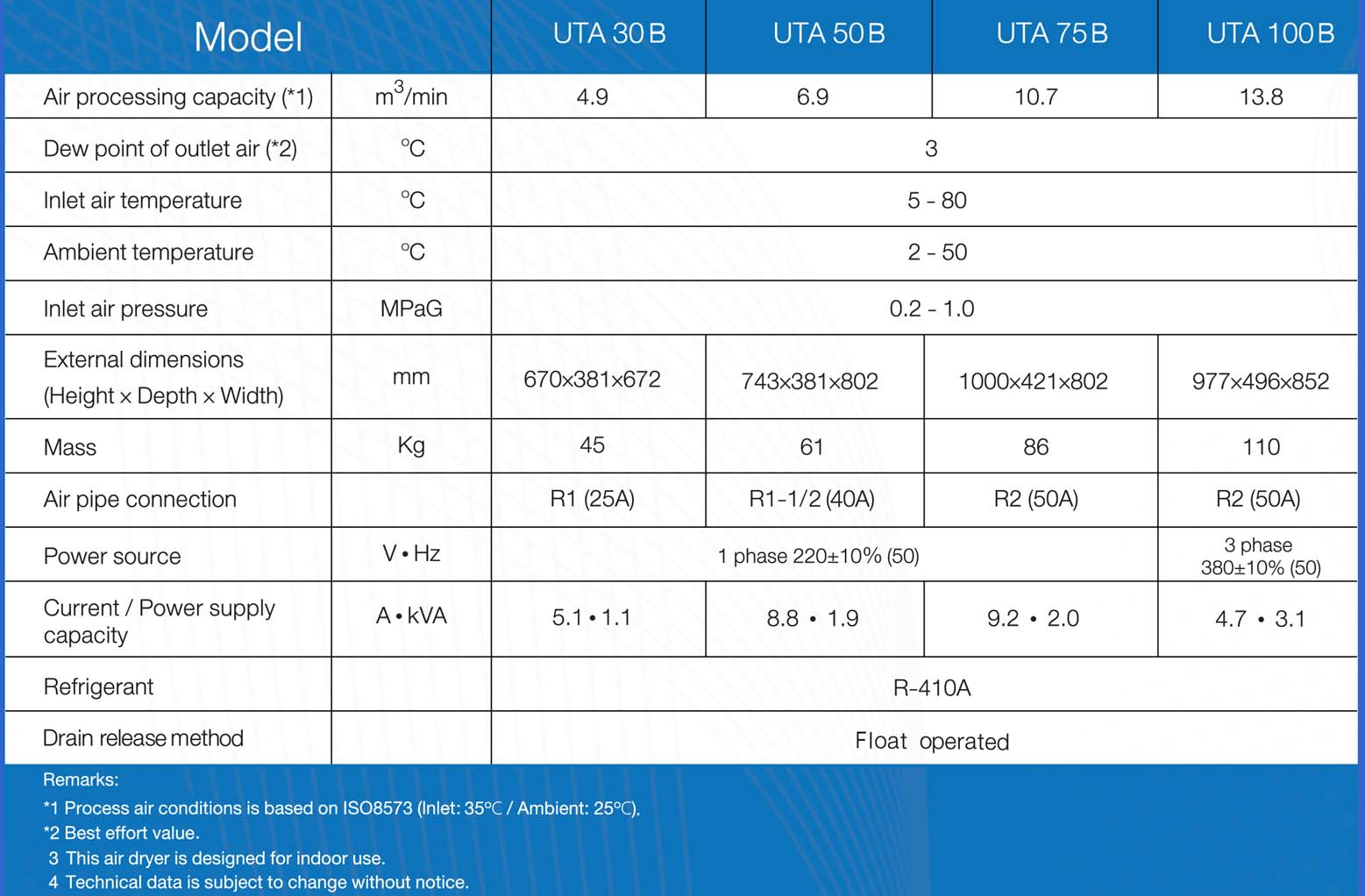 📊 Thông số kỹ thuật máy sấy khí Iron UTA_B:
